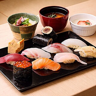 前菜/特上握り十一貫/雲丹/玉子/巻物/お椀/甘味